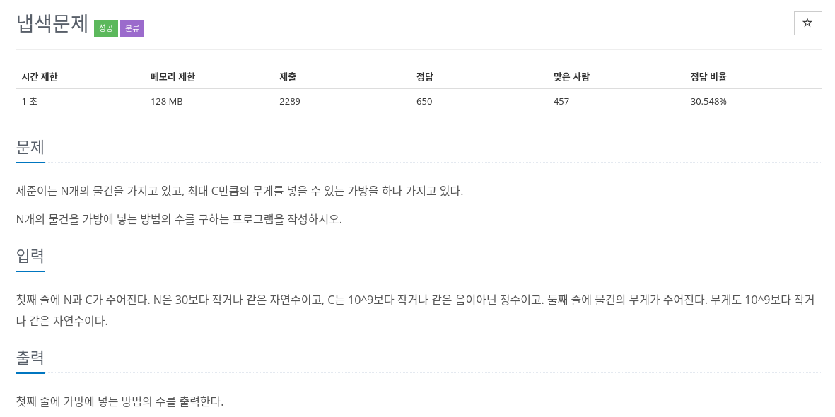 결론적으로는 weight 를 절반으로 나누어 각각을 브루트포스 방법으로 부분 집합을 구하고, a 부분 집합과 b 부분 집합의 합이 c 보다 작은 값들을 카운트 해주는 방법인 것이다.