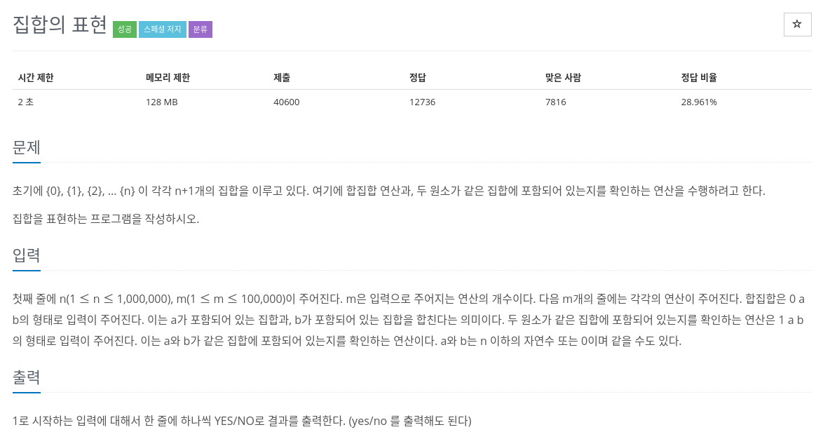 파인드유니온 알고리즘을 모르지만 일단 구현되게 하여 풀기는 하였다. 하지만 파인드유니온 알고리즘을 처음 접했으니 제대로 공부하고 최적화 방법도 알아보고 코드를 다시 작성해보았다.