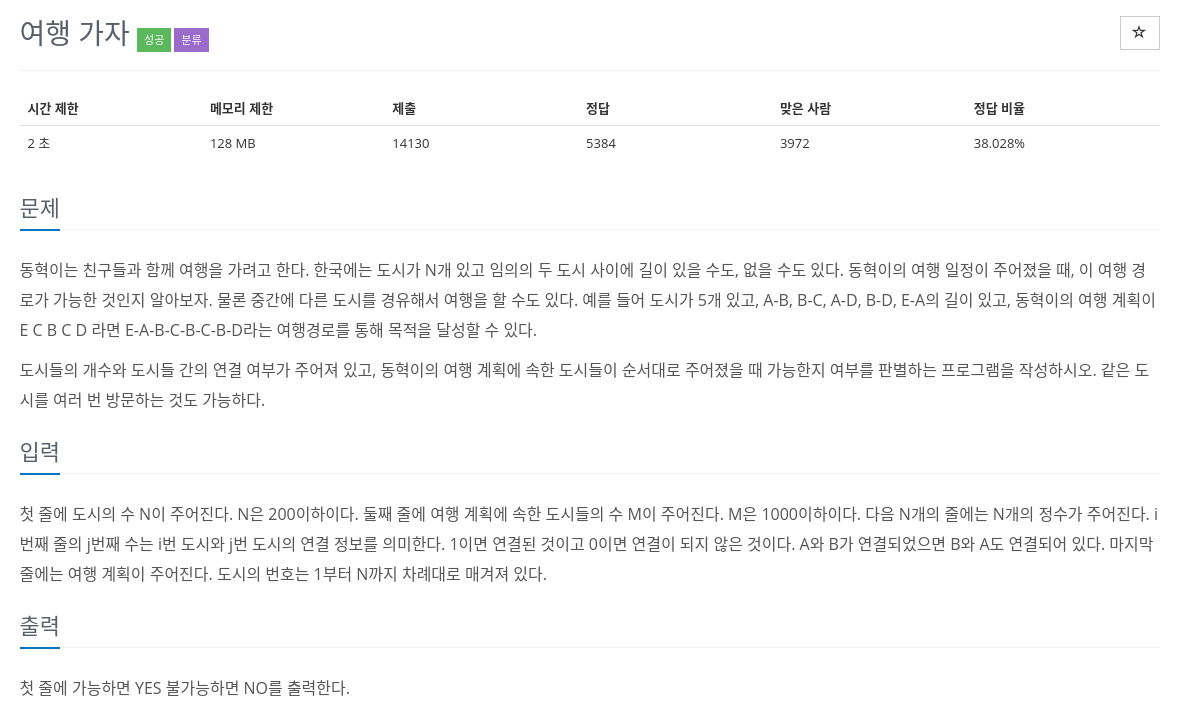연결된 도시들끼리 유니언을 이용하여 집합을 만들어주고, 주어진 여행경로들이 같은 루트 노드를 가지고 있는지를 체크해주면 된다.