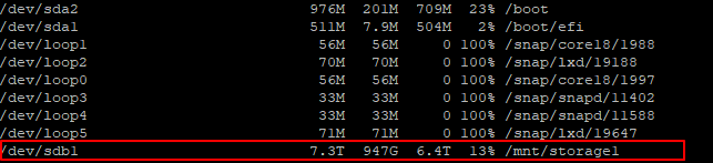 마운트 되었다면 위에서 열심히 추가했던 /dev/sdb1 이 목록에 표시된다.