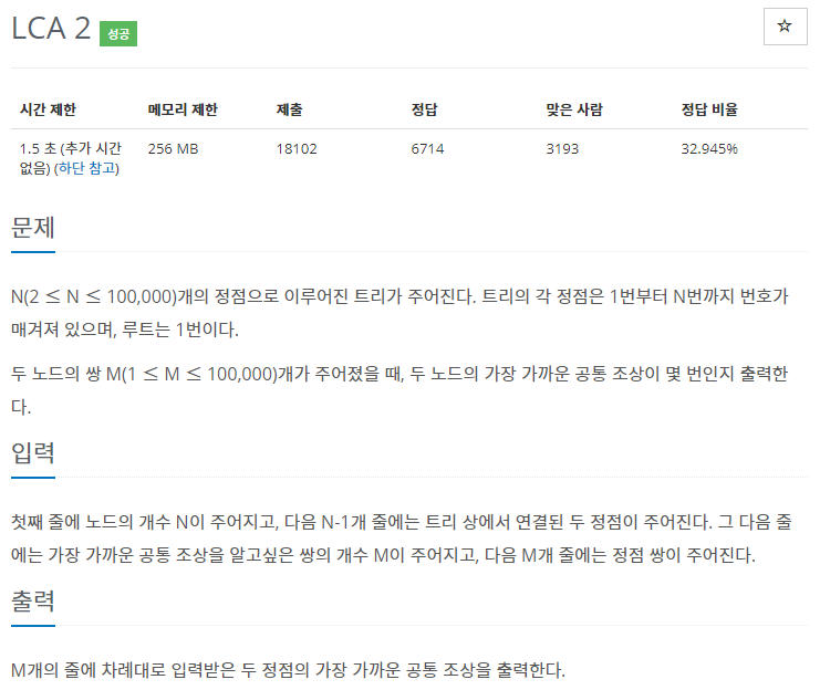 이번 문제는 최소공통조상을 구하는데 Sparse Table(희소 테이블)을 이용하는 문제였다.
