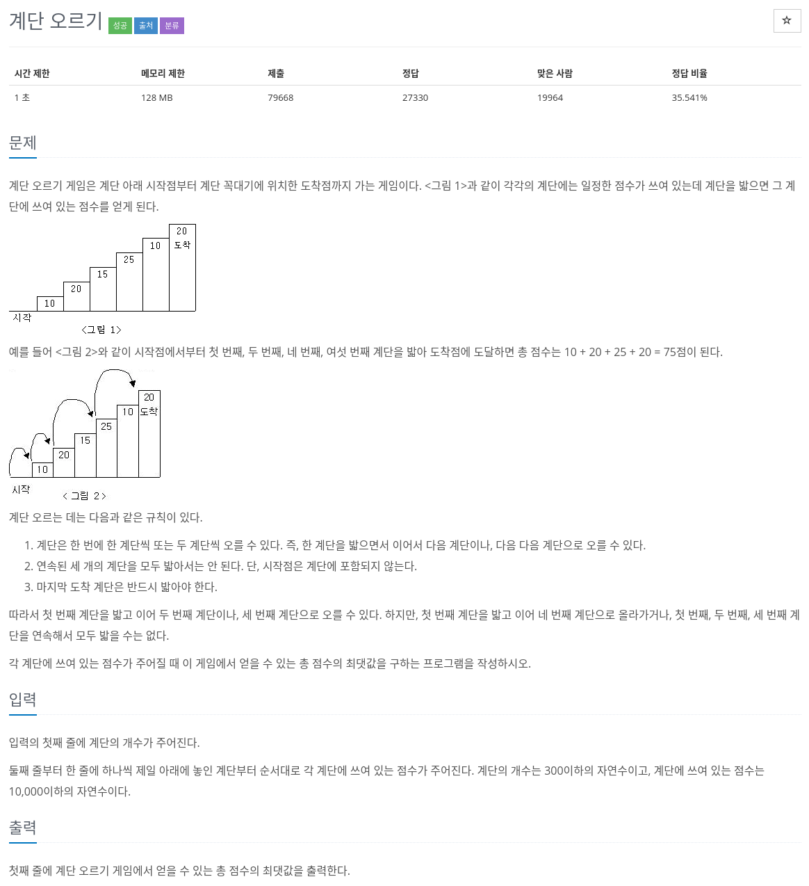 max_stair[j][1] = max_stair[j - 1][0] + stair[j] # 한 계단 전 값들 중 0번 요소 + 현재 계단 값