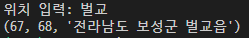 geocoding 코드를 일부 수정하여 입력된 주소의 상위 주소를 출력하도록 하였다.