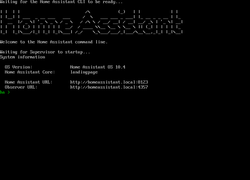 이렇게 HAOS로 부팅을 완료하면 설치가 되고 있는것과 같은 화면이 쫘르륵 뜨다가 아래와 같은 화면을 만날 수 있다. HAOS 설치가 완료된 것이다.