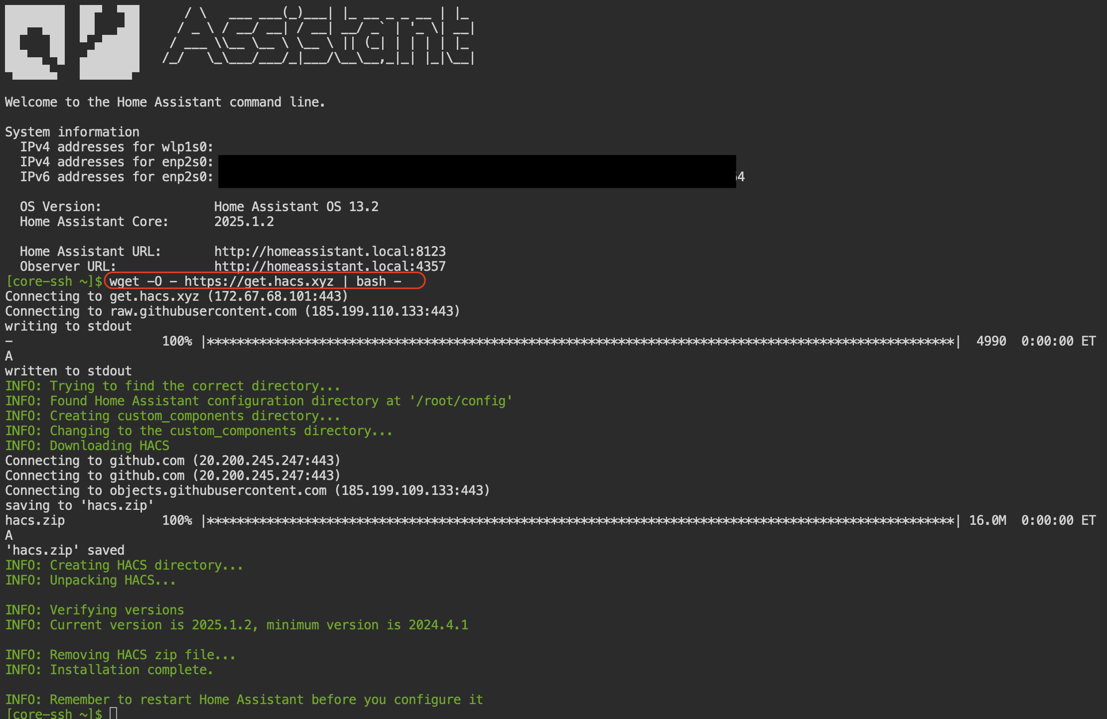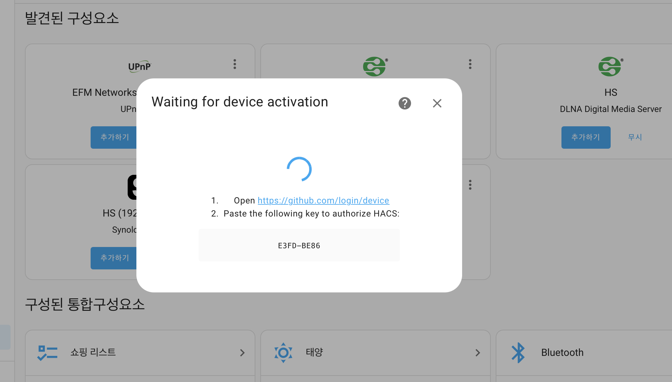 그렇게 되면 아래와 같이 설치가 진행이 되면서 HACS 설치가 진행이 된다.