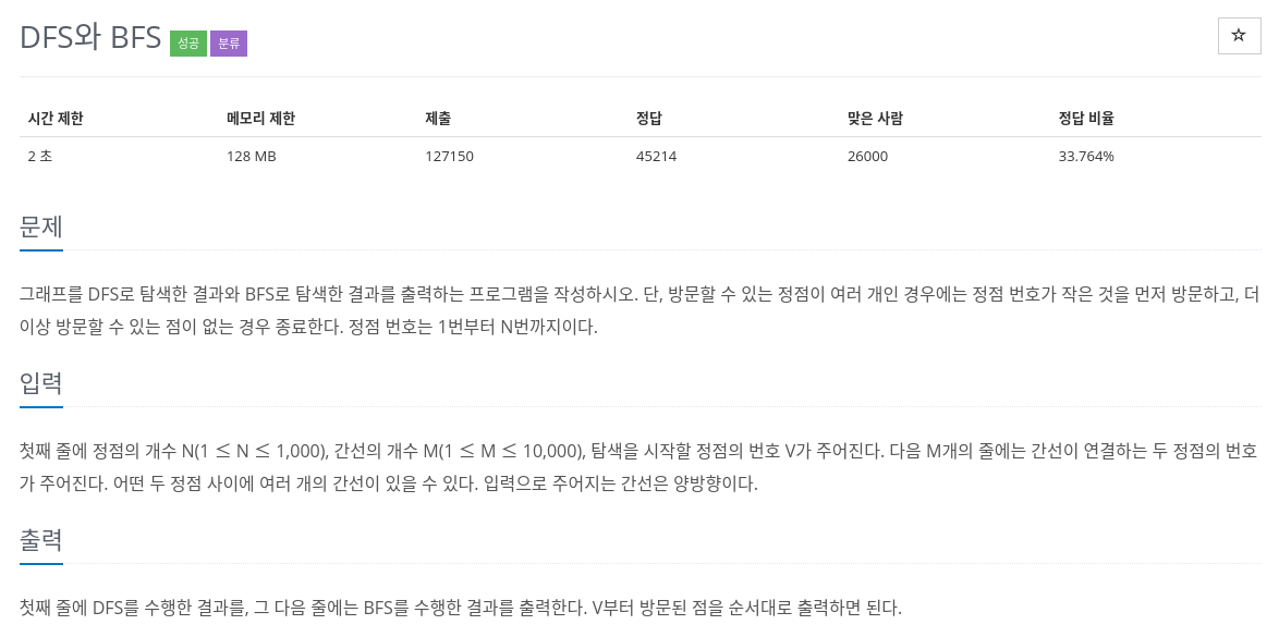 DFS는 깊이 우선 탐색, BFS는 너비 위주 탐색이다.