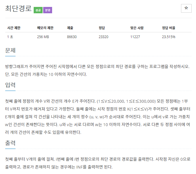 추가적으로 위의 접근 방법으로 접근하되, 정점 별로 가중치가 가장 작은 점부터 계산해야 중복계산을 막을 수 있기 때문에 기존 bfs에서 썼던 리스트보다는 최소 heap을 이용하여야 시간 초과를 피할 수 있다.