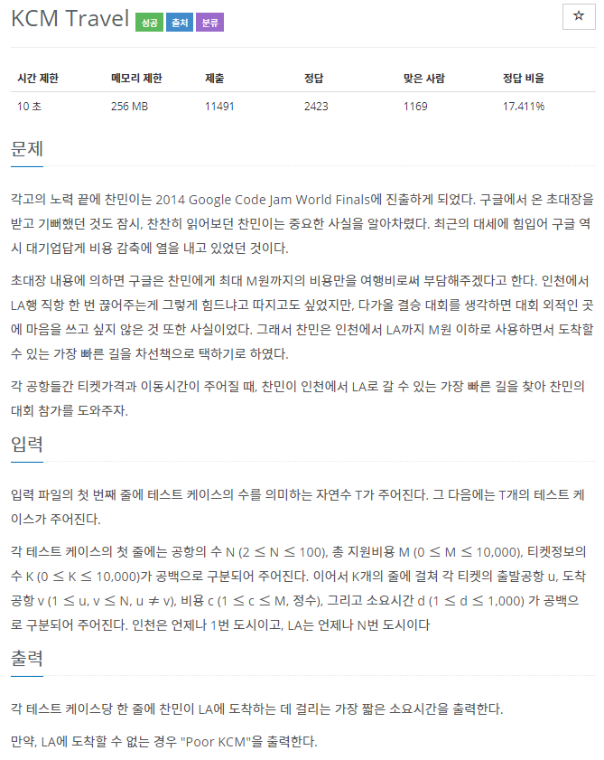 굉장히 어려웠고 혼자 해결하지 못하여 다른 분들의 풀이를 많이 참고하여 진행하게 되었다. 최대 비용이 정해져 있는 점에 착안하여 냅색 알고리즘을 약간 혼합하여 풀었다.